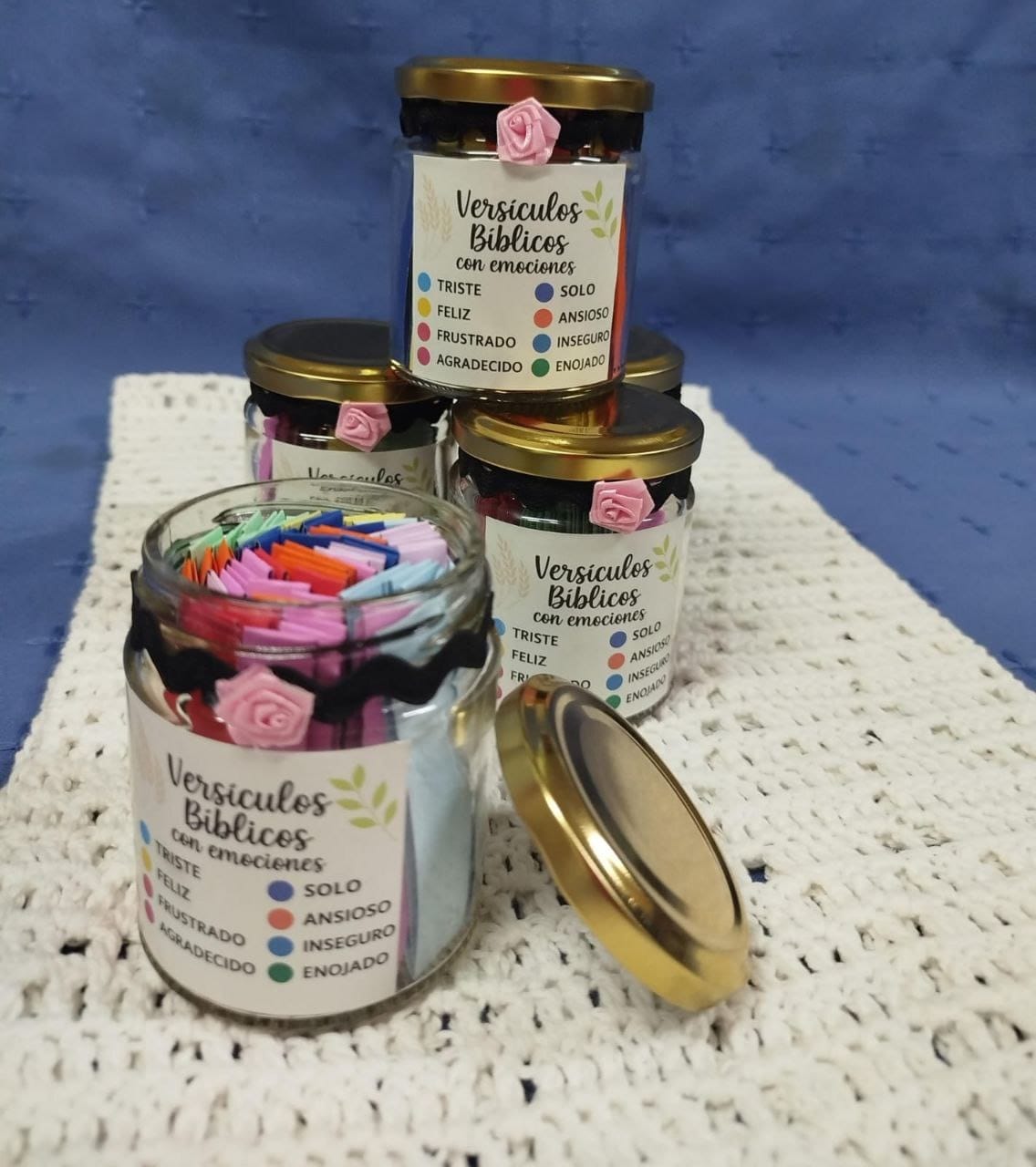 Con el frasco, solo sacas un papelito al día y ya Tenes tu devocional listo en 1 minuto.